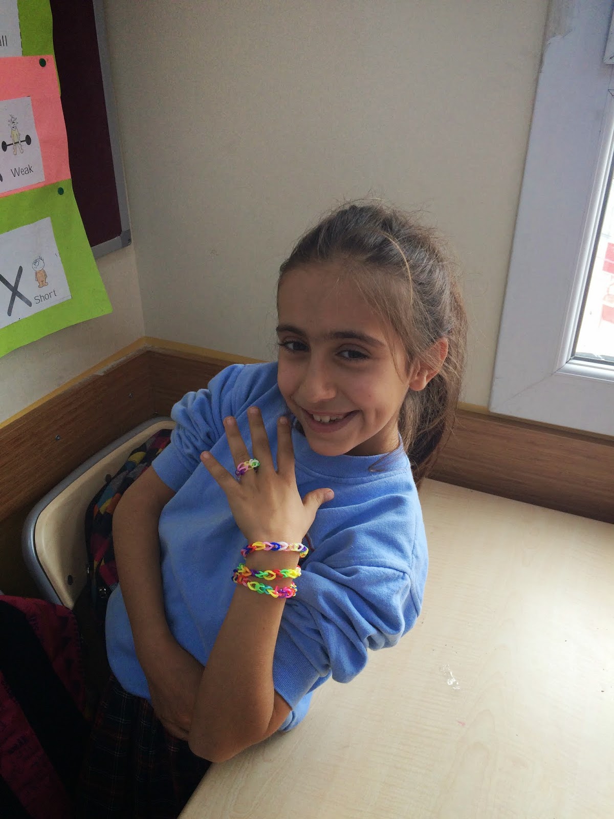Renkli renkli bileklik, kolye ve yüzük yaptık. Yaparken de çok eğlendik. Daha sonra da taktık takıştırdık, poz verdik. :)