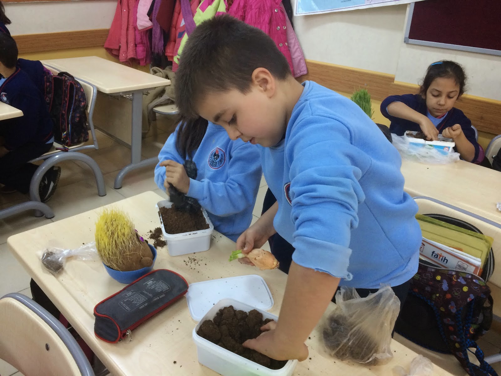 İstedikleri kaplara, çeşitli bitkiler ektiler. Bitkilerin büyümesi için nelere gereksinim duyduklarını öğrendiler.